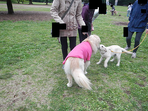 [2組]−(B)・・・F番 ・ 「モモ」ちゃんと「サンタ君」 ・・・ ![]() モモちゃんは性格が良く、社交家なのでいろいろな犬種の 友人がいる。 (2014年1月) |