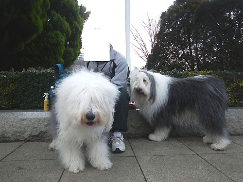 【オールド・イングリッシュ・シープドック】--- [2組 −(A)、(B)・・・ K番] 「ミルキー」ちゃんと「メープル」ちゃん ★【拡大画像】 ![]() 園内の散歩を終え、お父さんと家路を急ぐ。・[あれから1年] (2016年2月) |