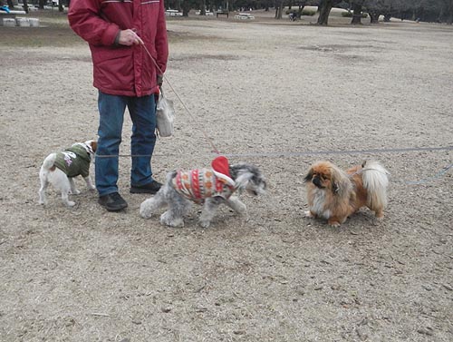 | 【ペキニーズ犬】 [1組・・・(G)--J番] ・「ムー」君(茶色)・・・(男の子)---[1歳1ヶ月] ![]() ミニチュア・シュナウザー犬の「モコ」ちゃんや、3匹のジャック・ラッセル犬 たちとは仲の良い遊び仲間。 (2015年12月・下旬) |