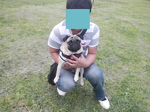 【パグ犬】 ・・・ 【は行---[1組]・・・(B)−A番 】 ・「オハナ」ちゃん・(女の子) 4歳 ★【拡大画像】 ![]() 撮影者の私も「オハナ」ちゃんに挨拶する。 (2015年5月) |
