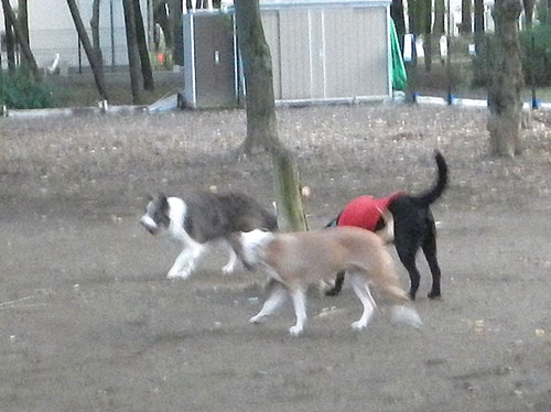 | ※撮影は夕暮れ時で、ワンちゃんたちは園内のドックランでは、寸暇を惜しんで走り廻っており、 |